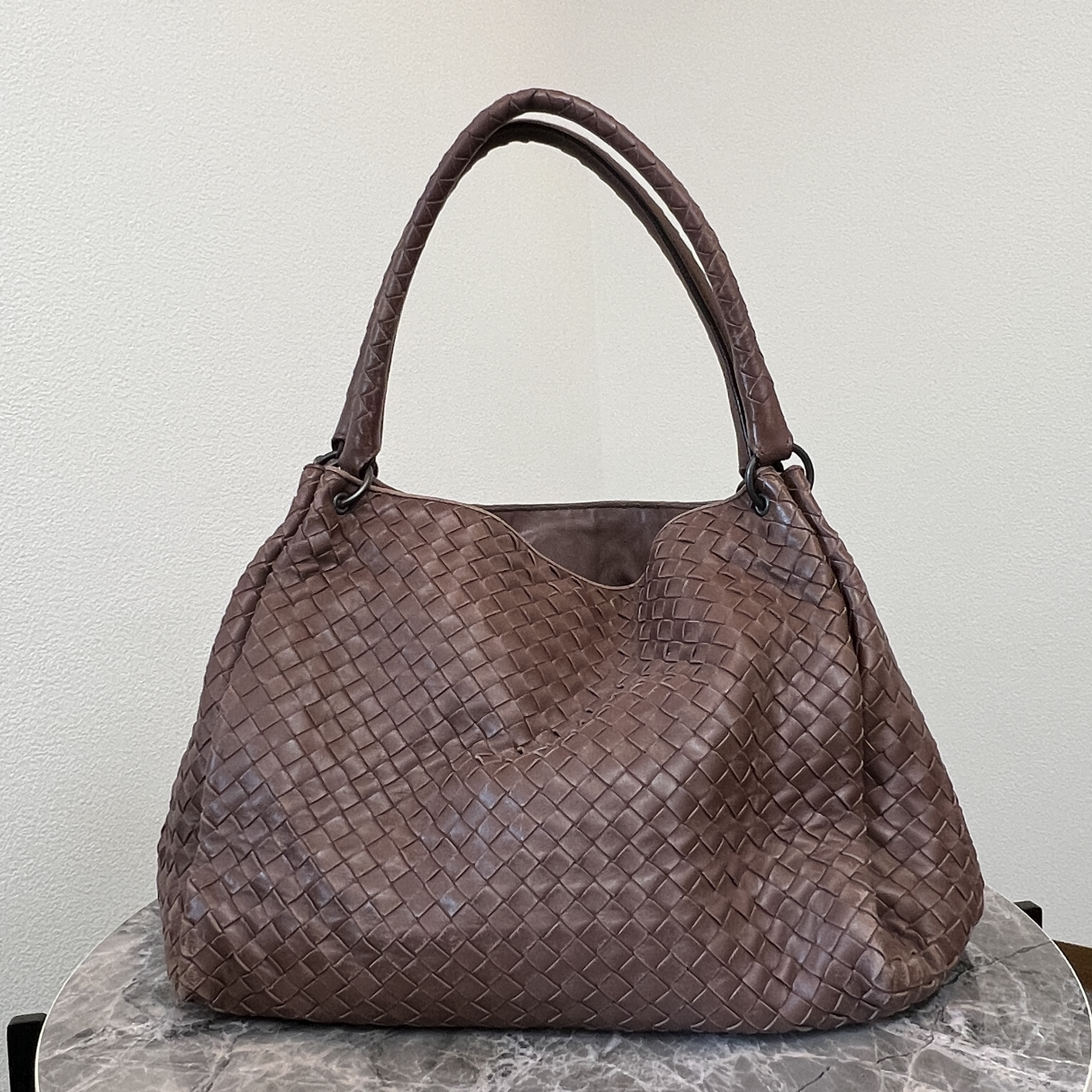 - レザーの乾燥と汚れ:ボッテガのレザーは非常に繊細です。市販のクリームでのお手入れや、湿気対策をされていたお品物は、評価がぐんと上がります。