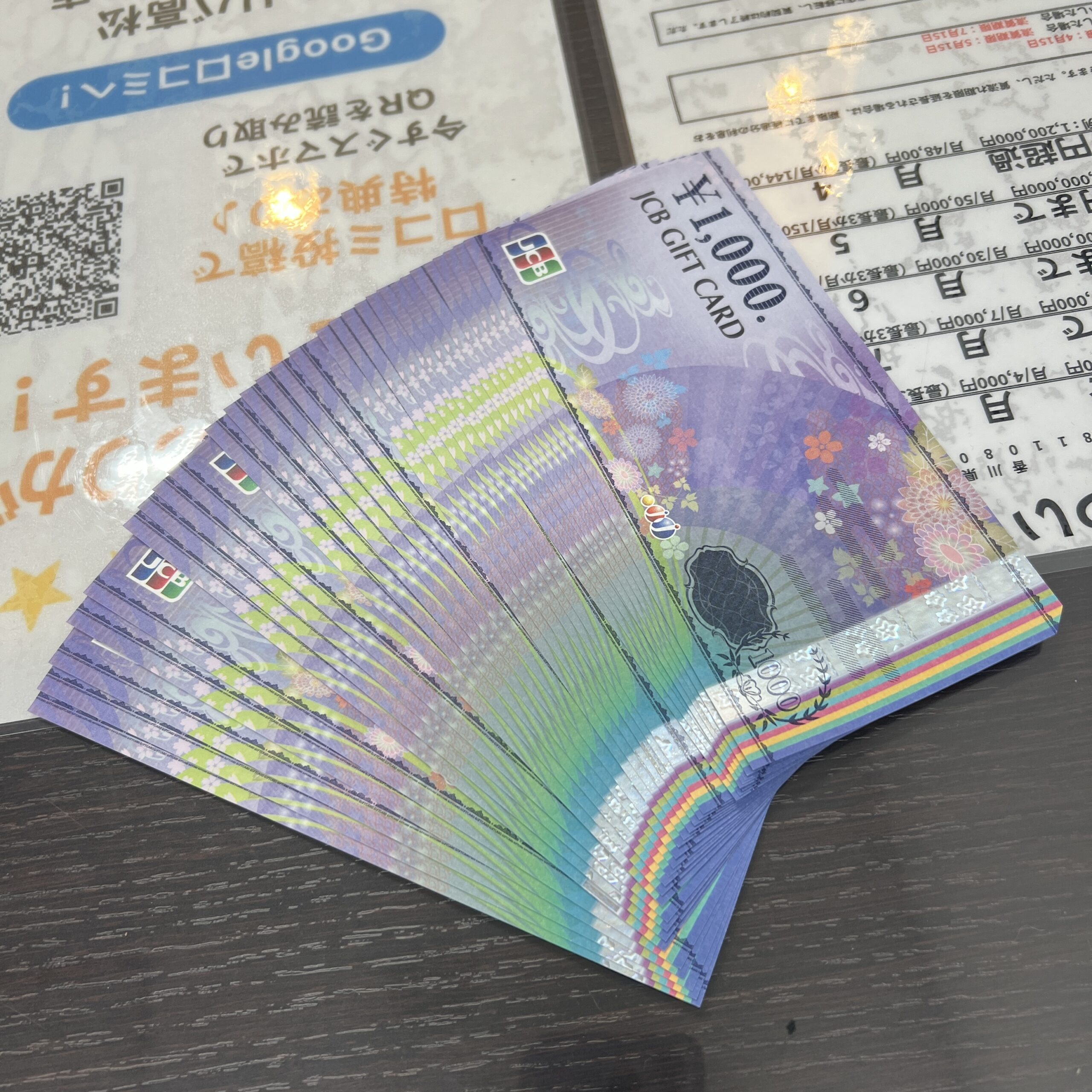香川県高松市のブランド・金券買取専門店「トレリバ高松レインボー通り店」です。本日、JCBギフトカードをまとめてお譲りいただきました。